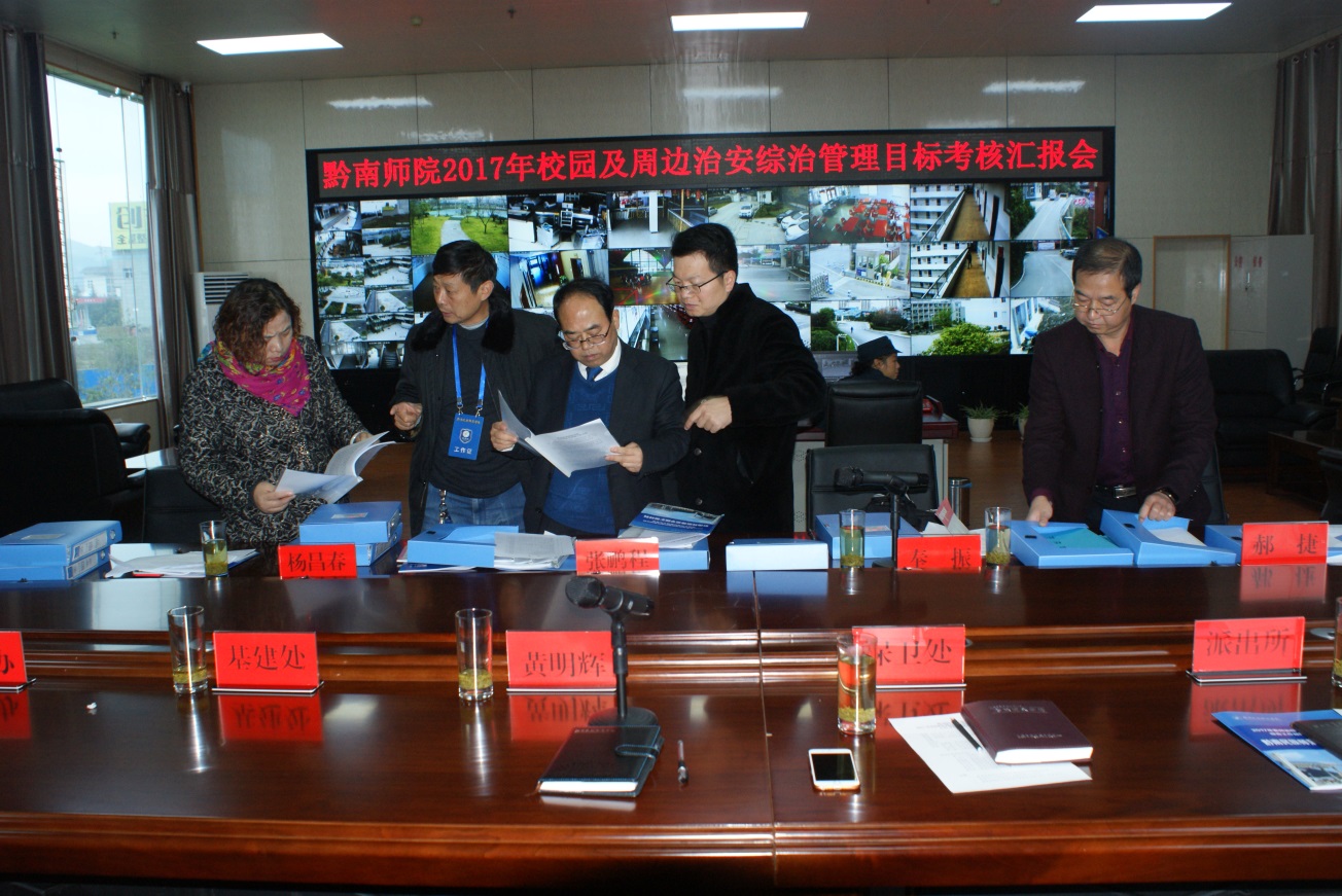 2017年11月21日,贵州民族大学党委副书记张鹏程带队对我校校园及周边治安综合治理目标管理工作进行考核。我校在行政楼东一楼保卫处监控大厅举行了校园及周边治安综合治理工作汇报会。会议由学校黄明辉副校长主持。学校保卫处、总务处、基建处、教务处、党政办、学生处负责人参加会议。